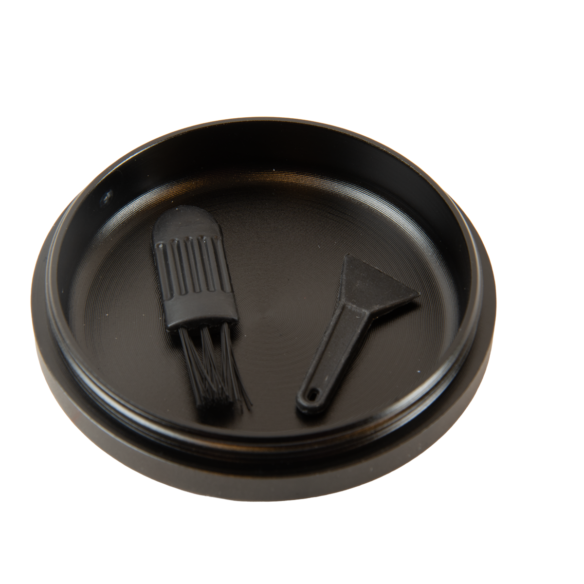 - Mesh screen filter – captures finer particles in the bottom chamber for optional use