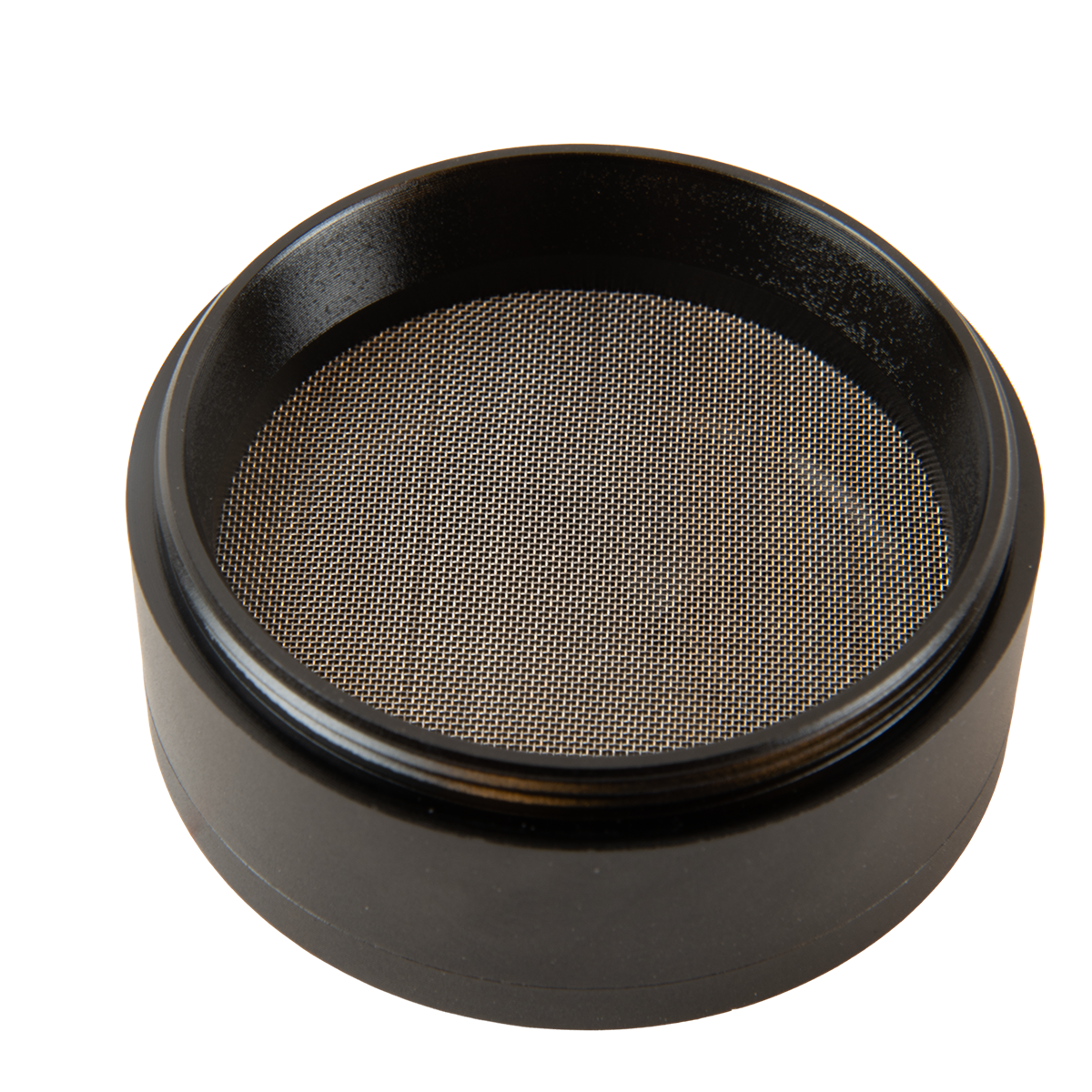 - Four piece design – separates grinding chamber, mesh screen and collection section for versatile use