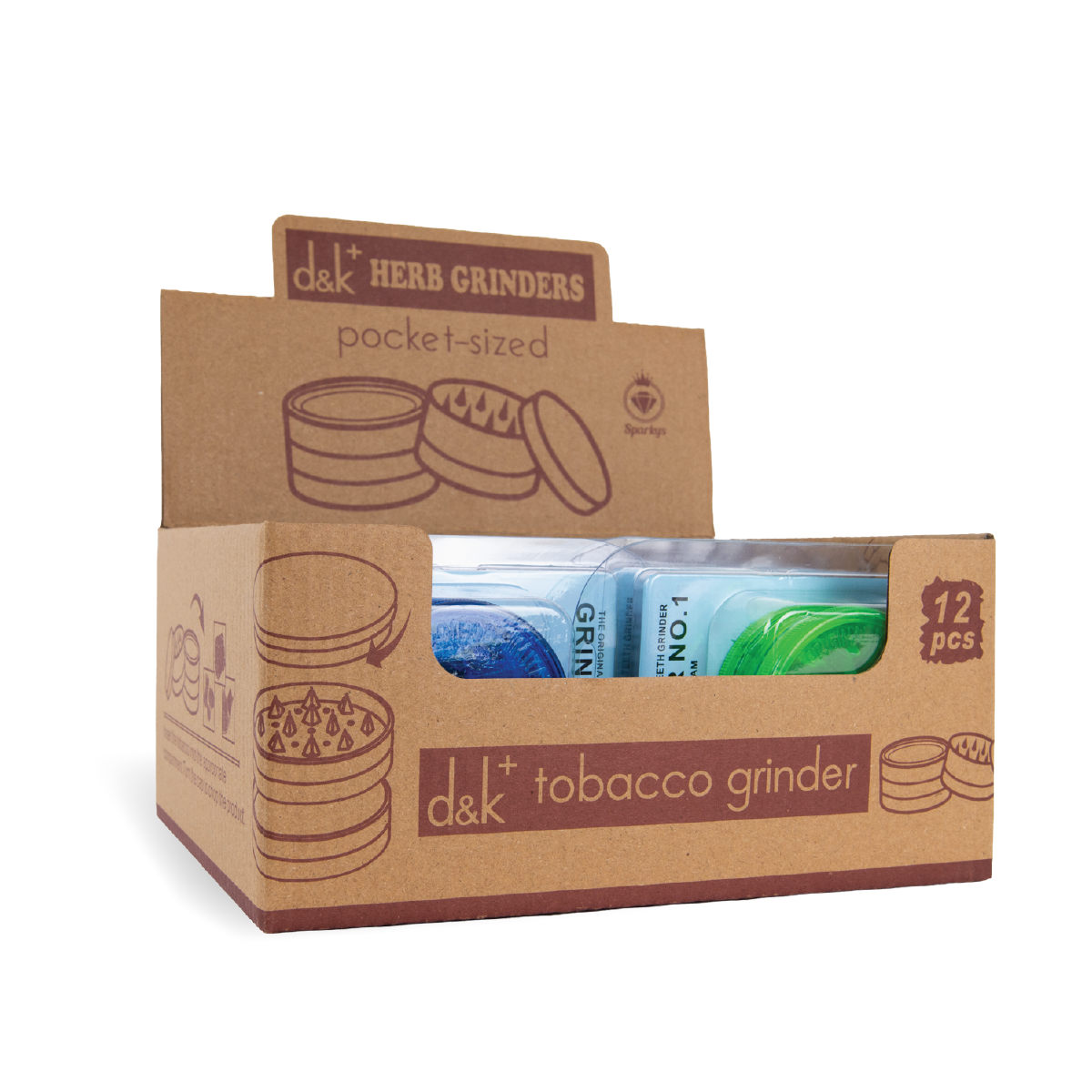 Each box includes 12 individually packed large grinders.