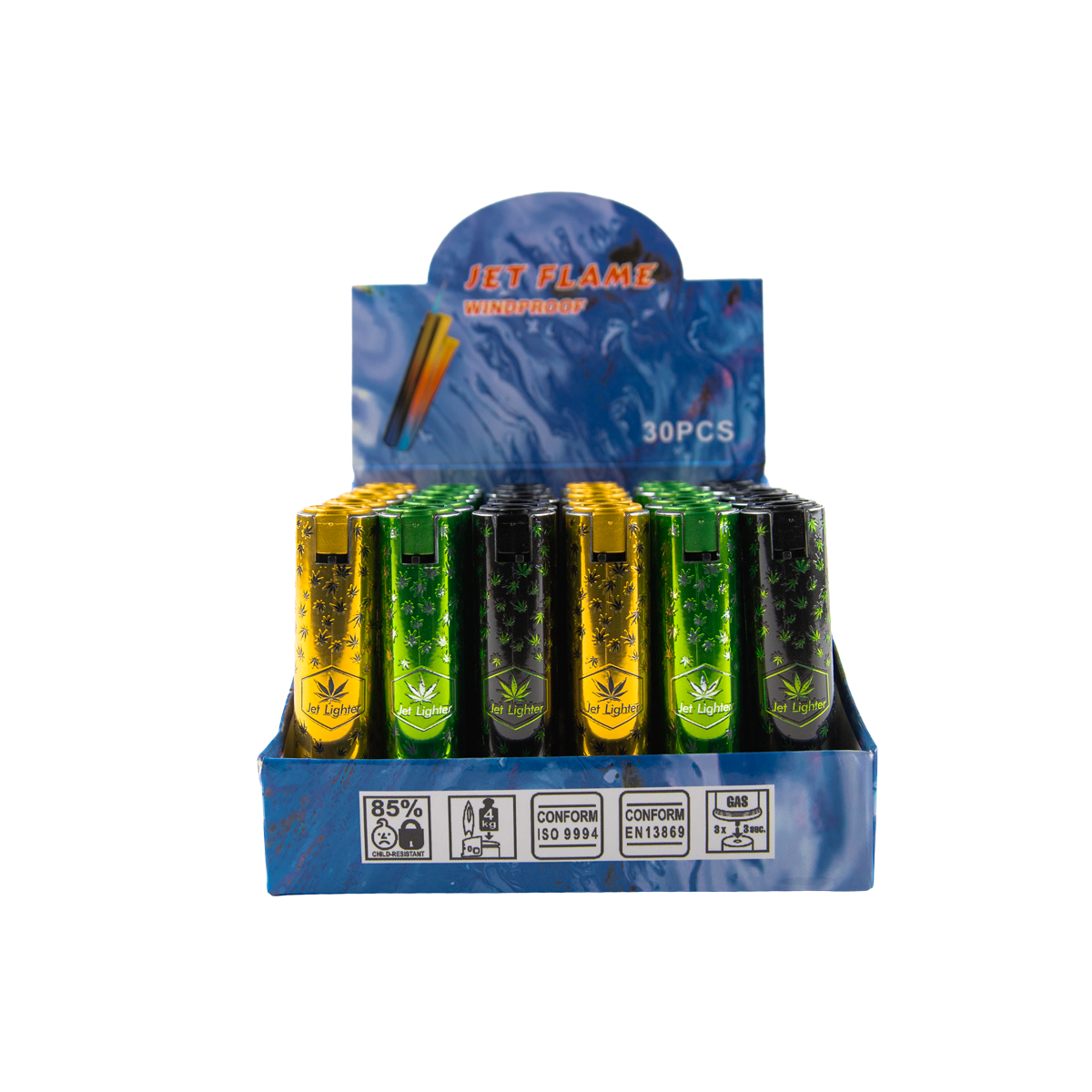 Elevate your lighter selection with these premium Sparkys metallic jet lighters, available in a stunning array of eye catching finishes. From sleek leaf lembossed designs and vibrant rainbow patterns to sophisticated metallic and gradient fade effects, this diverse collection combines powerful jet flame technology with striking aesthetics that appeal to discerning customers.